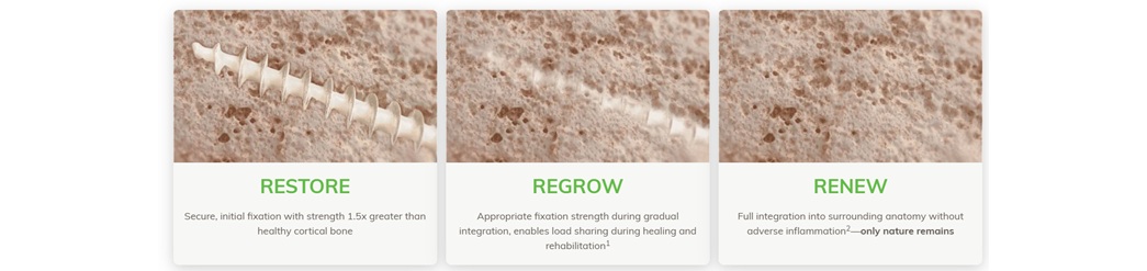 OSSIOfiber® is a strong, bio-integrative non-metal implant for orthopedic surgery. It provides stable fixation and is naturally replaced by bone.