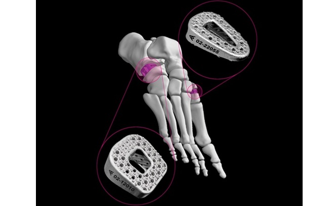 The ARKEO™ Wedge Fixation System integrates an anatomical design with the pillared microstructure of the Auxano® in-growth technology to provide a secure fixation interface at the site of correction. Designed for use in Evans and Cotton osteotomies, the ARKEO™ surgical set includes intuitive instrumentation that enhances reproducibility by giving surgeons complete control over implant positioning throughout the procedure.