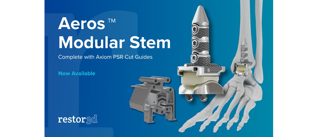 DURHAM, N.C., April 2, 2026 -(BUSINESS WIRE)- restor3d, a leader in 3D-printed, personalized orthopedic solutions, today announced the full commercial availability of the Aeros™ Modular Stem System, an advancement in stemmed total ankle replacement designed to enhance implant stability, preserve bone, and improve surgical efficiency. The system follows a successful limited market release that began May 5, 2025, during which more than 250 procedures were completed across 50+ unique surgeons with strong feedback regarding intra-operative workflow and patient outcomes.