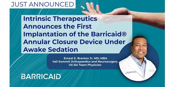 Spine Top Stories Intrinsic Therapeutics Announces the First Implantation of the Barricaid® Annular Closure Device Under Awake Sedation byJosh SandbergSeptember 2, 2025